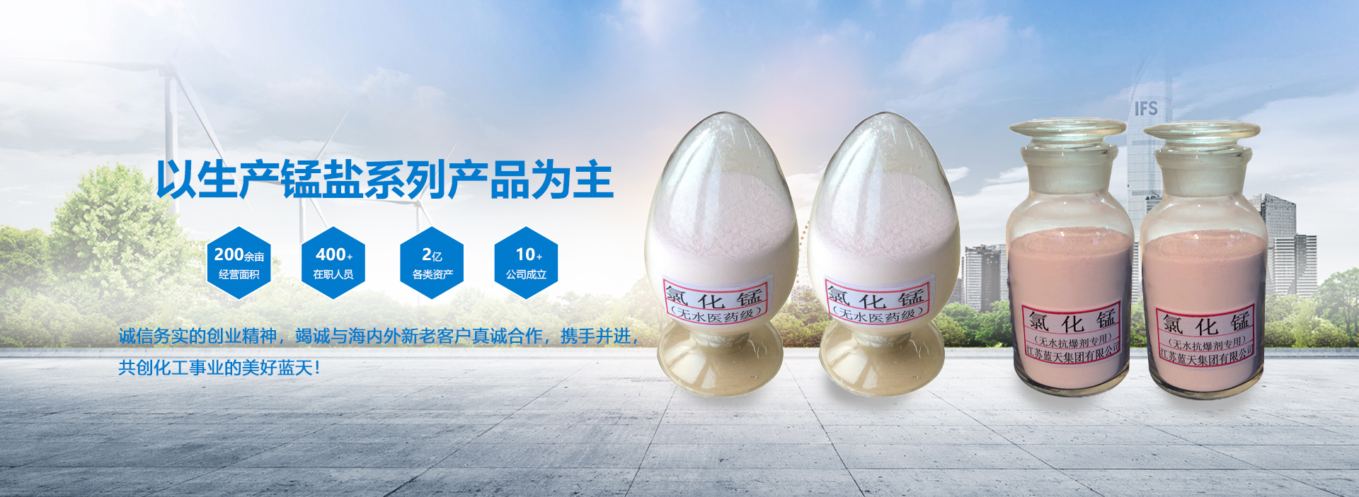 淮安市藍(lán)天化工有限公司,是以生產(chǎn)錳鹽等無(wú)機(jī)鹽系列產(chǎn)品為主。農(nóng)藥中間體、醫(yī)藥中間體加工、新產(chǎn)品研發(fā)為一體的大型綜合性民營(yíng)企業(yè)。公司業(yè)務(wù)遍及海內(nèi)外數(shù)十個(gè)城市與地區(qū),現(xiàn)擁有各類資產(chǎn)2億多元,生產(chǎn)經(jīng)營(yíng)面積200余畝,員工400多人。其中各類專業(yè)技術(shù)人員占1/3以上。并具有較強(qiáng)的技術(shù)研發(fā)和生產(chǎn)能力?,F(xiàn)已初步形成一支高素質(zhì)、敬業(yè)愛(ài)崗、廉潔高效的作戰(zhàn)團(tuán)隊(duì)。